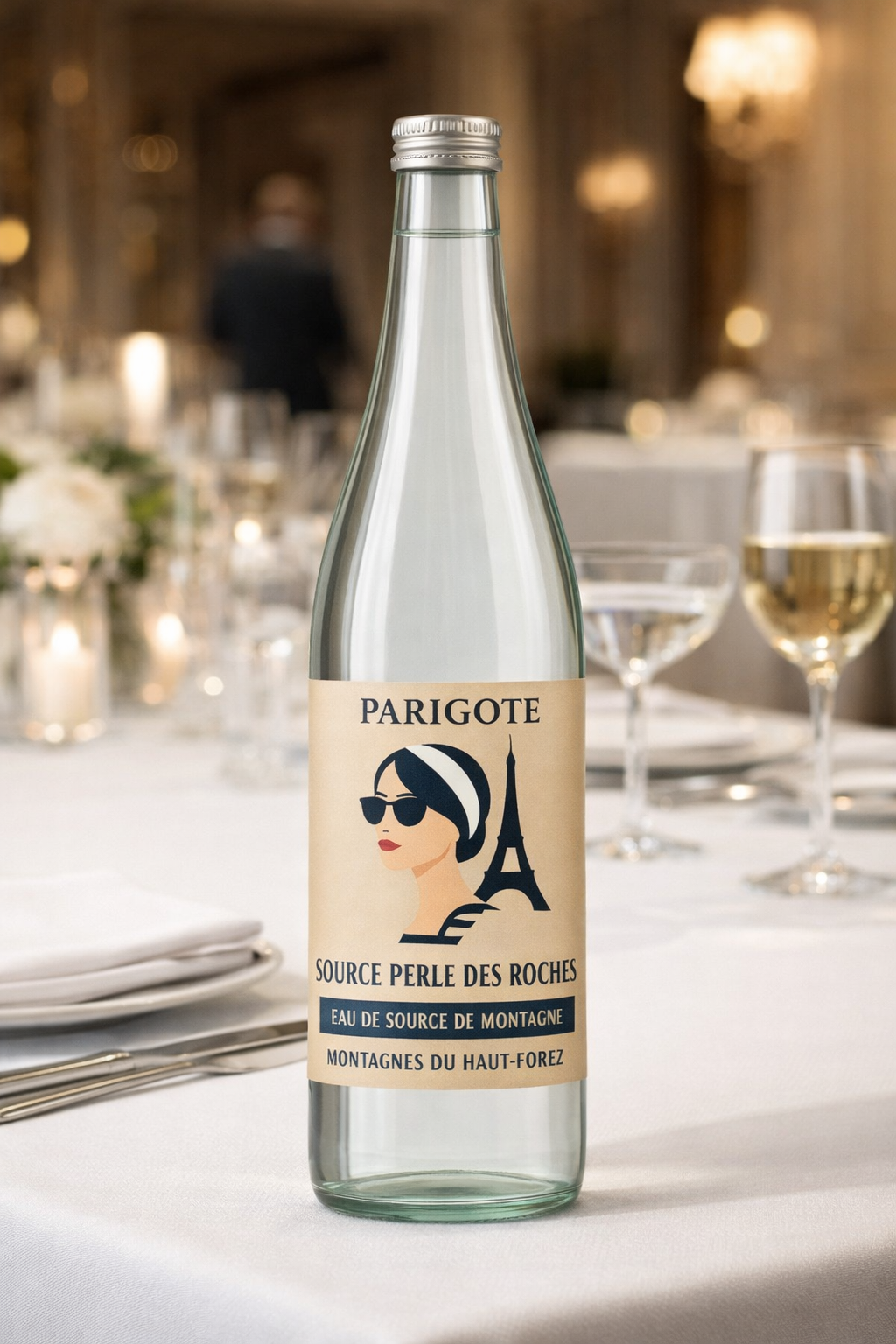 De part le choix de matériaux éco-responsables, l'eau de source "Perles des Roches" pour PARIGOTE est disponible en bouteilles en verre, un matériau 100% recyclable.